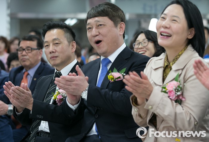 앞서, 정 전 의원은 지난 2007년 대선 당시 이명박 한나라당 대통령 후보의 BBK 주가조작 연루 의혹을 제기했고, 이후 허위사실 유포로 인한 공직선거법 위반 등으로 불구속 기소돼 징역 1년과 피선거권 10년 박탈 선고를 받은 바 있다.정봉주 전 의원(가운데)이 한병도 전북 익산을 후보 선거사무소에서 열린 개소식에 참석해 박수를 치고 있다. 2016.04.01 박동욱 기자