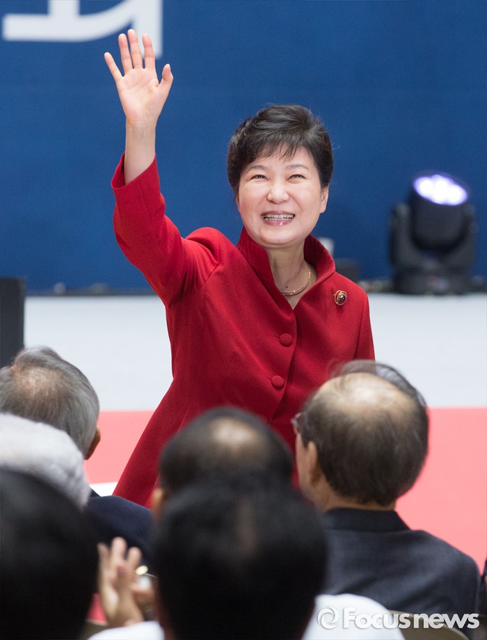 (서울=포커스뉴스) 박근혜 대통령이 9일 오후 서울 송파구 잠실실내체육관에서 열린 새누리당 4차 전당대회에 참석해 당원들을 향해 인사하고 있다.