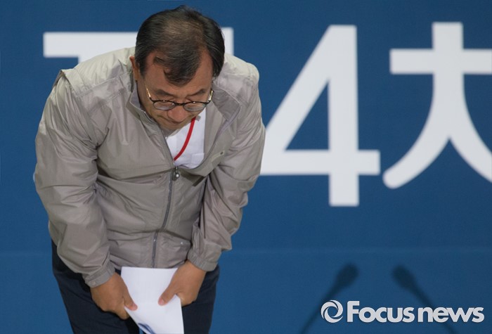 (서울=포커스뉴스) 9일 오후 서울 송파구 잠실실내체육관에서 열린 새누리당 4차 전당대회에 참석한 이정현 당대표 후보가 정견발표를 마친 뒤 인사하고 있다.