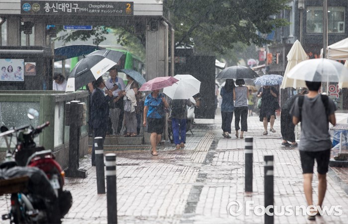 (서울=포커스뉴스) 9일 오후 서울 동작구 이수역 인근에 시민들이 비를 피해 발걸음을 재촉하고 있다.