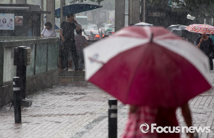 (서울=포커스뉴스) 9일 오후 서울 동작구 이수역 인근에 시민들이 비를 피해 발걸음을 재촉하고 있다.