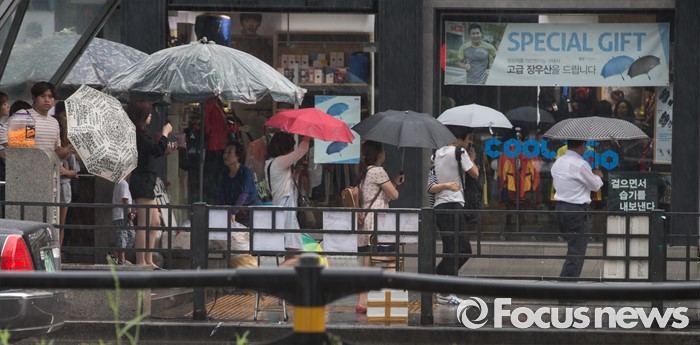 (서울=포커스뉴스) 9일 오후 서울 동작구 이수역 인근에 시민들이 비를 피해 발걸음을 재촉하고 있다.