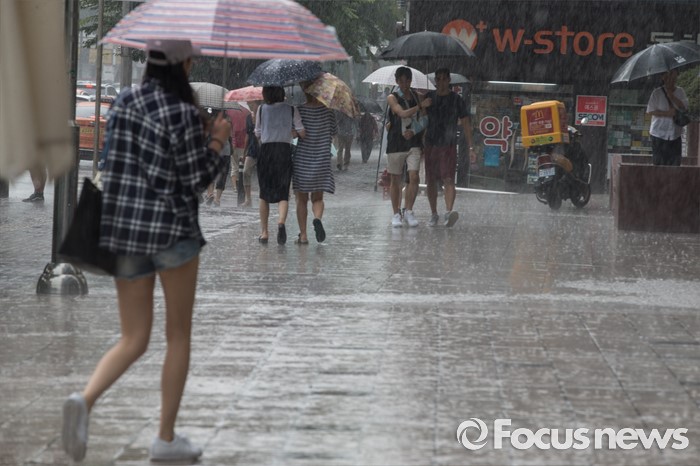 (서울=포커스뉴스) 9일 오후 서울 동작구 이수역 인근에 시민들이 비를 피해 발걸음을 재촉하고 있다.