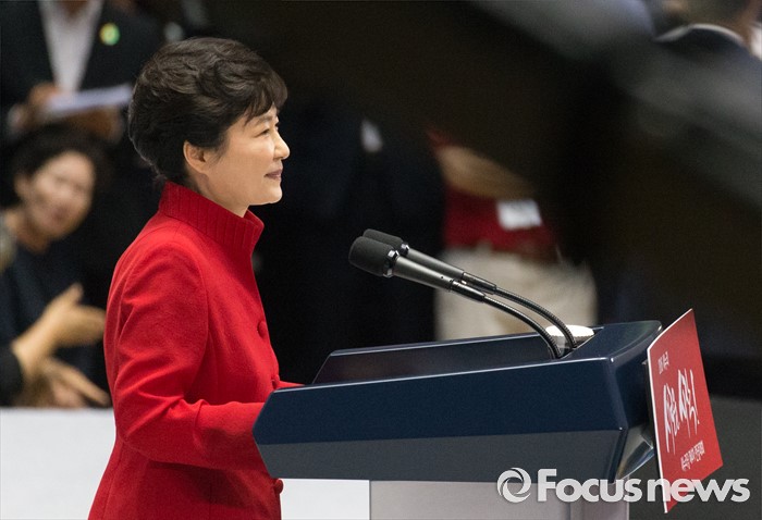 (서울=포커스뉴스) 박근혜 대통령이 9일 오후 서울 송파구 잠실실내체육관에서 제4차 새누리당 전당대회에 참석해 축사를 하고 있다.