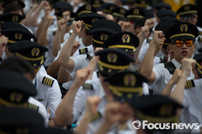 한편, 이날 집회에 이규남 노조위원장이 불참한 것과 관련해 노조 측은 "이 위원장이 최근 부기장으로 강등됐는데 집회 참여를 방해하려는 목적에서 사측이 갑자기 교육을 받게 했다"고 주장했다.