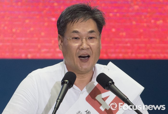 (서울=포커스뉴스) 9일 오후 서울 송파구 잠실실내체육관에서 열린 새누리당 4차 전당대회에 참석한 정문헌 최고위원 후보가 정견발표를 하고 있다.