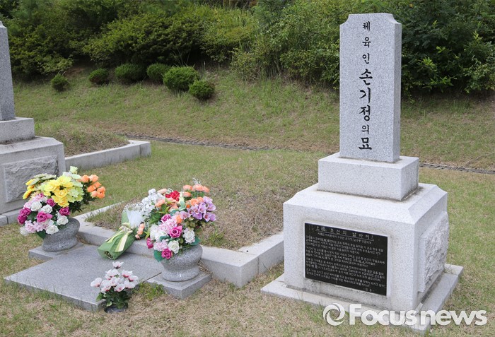 (대전=포커스뉴스) 9일 대전 유성구 국립대전현충원 국가사회공헌자묘역에 안장되어 있는 베를린 올림픽 마라톤 금메달리스트 손기정 선수의 묘역.