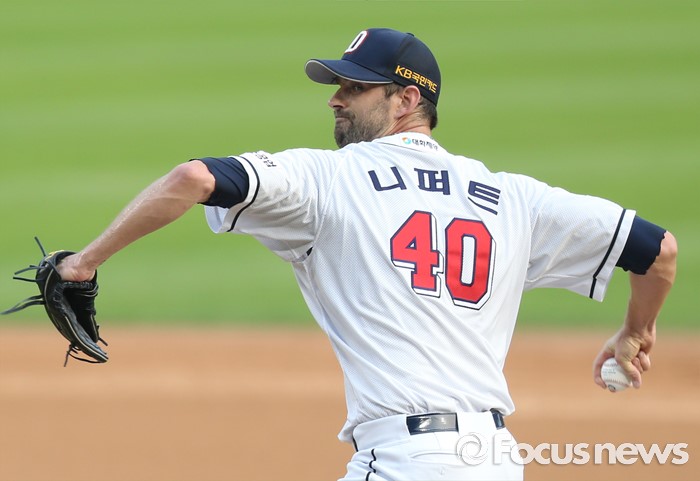 (서울=포커스뉴스) 9일 서울 잠실구장에서 열린 2016 프로야구 KIA-두산 경기에서 1회초 두산 선발투수 니퍼트가 투구하고 있다.