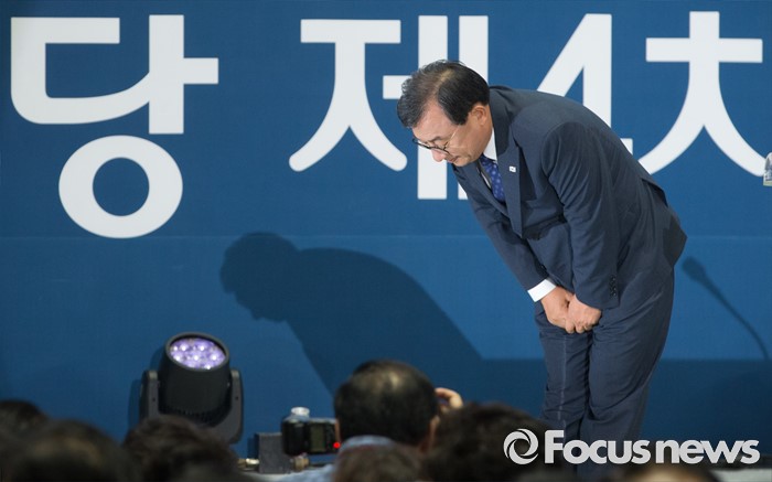 (서울=포커스뉴스) 9일 오후 서울 송파구 잠실실내체육관에서 열린 새누리당 4차 전당대회에 참석한 이정현 의원이 당대표로 선출된 후 수락연설에 앞서 인사하고 있다.