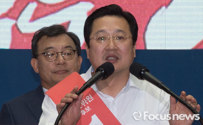 (서울=포커스뉴스) 9일 오후 서울 송파구 잠실실내체육관에서 열린 새누리당 4차 전당대회에서 이장우 신임 최고위원이 소감을 전하고 있다.