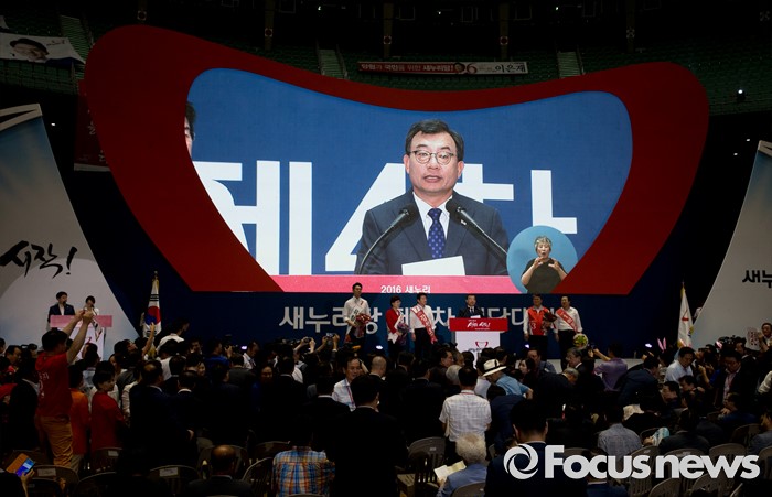 (서울=포커스뉴스) 9일 오후 서울 송파구 잠실실내체육관에서 열린 새누리당 4차 전당대회에서 당대표로 선출된 이정현 의원이 수락연설을 하고 있다.