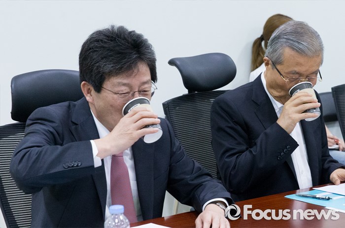 (서울=포커스뉴스) 10일 오전 서울 여의도 국회 의원회관에서 열린 '어젠다(Agenda) 2050' 회의에 참석한 유승민(왼쪽) 새누리당 의원과 김종인 더불어민주당 비대위 대표가 커피를 마시고 있다.