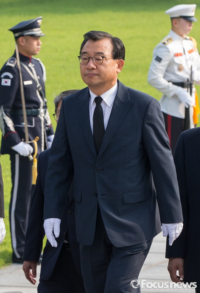 (서울=포커스뉴스) 8·9 전당대회에서 새누리당 대표로 선출된 이정현 대표가 10일 오전 서울 동작구 국립현충원 참배단으로 향하고 있다.