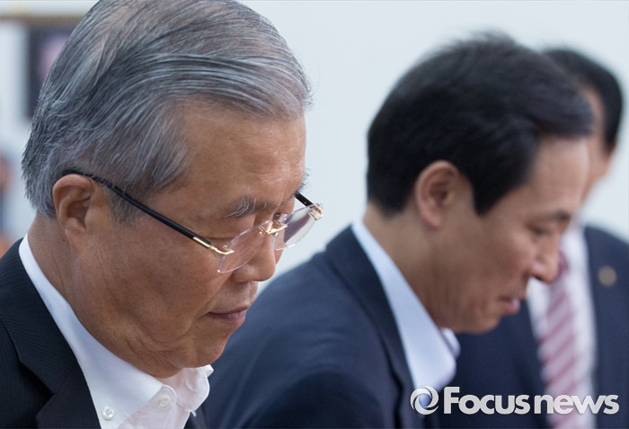 (서울=포커스뉴스) 10일 오전 서울 여의도 국회에서 열린 더불어민주당 비상대책위원회의에 김종인(왼쪽) 비대위 대표, 우상호 원내대표 등이 참석하고 있다.