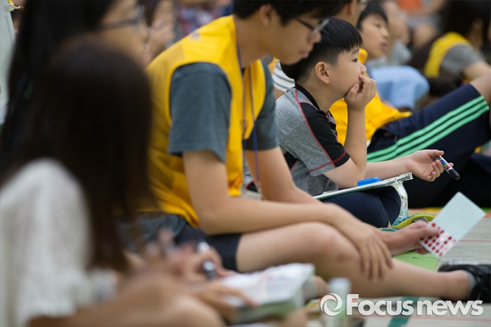 (서울=포커스뉴스) 10일 오전 서울 성동구 성동구청 대강당에서 열린 '성동 어린이 독서 골든벨'에서 초등학생들이 문제를 풀고 있다.