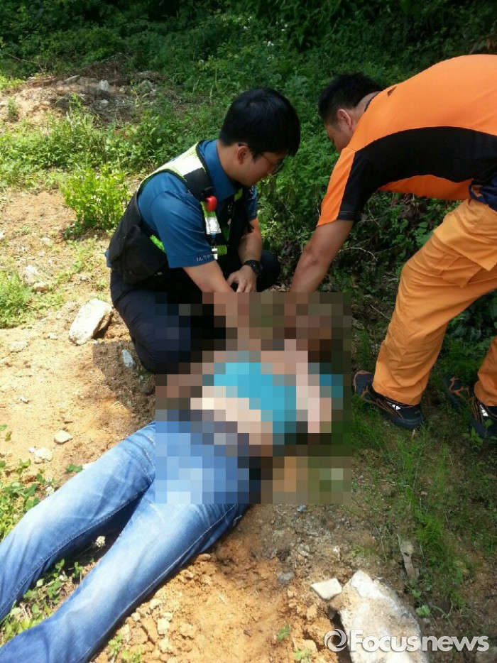 보건복지부 차전경 정신건강정책과장은 “자살을 부추기거나 돕는 것은 관련 법률에도 규정되어 있는 명백한 범죄행위이다”며 “인터넷 상에서 자살을 부추기거나 동반자살을 모집하는 등 자살유해정보를 발견해 적극적으로 신고해 주는 것으로 이러한 범죄를 예방하고 많은 생명을 살릴 수 있다”고 강조했다.17일 오전 11시40분께 전북 고창군 모양지구대와 119구조대가 고창군 고창읍 월산리의 한 야산 부근에서 차량 내에 인화물질을 피운 A씨를 구조하는 장면.<사진제공=고창경찰서 모양지구대>