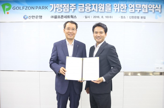 골프존네트웍스는 10일 신한은행과 골프존파크 가맹점주 금융지원을 위한 업무협약(MOU)를 체결했다.