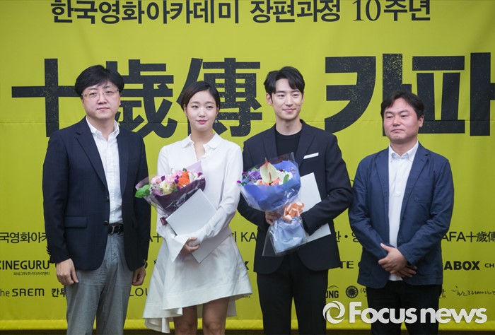 충무로의 젊은피로 꼽히는 배우 이제훈과 김고은이 ‘KAFA 십세전’의 홍보대사를 맡았다. 두 사람은 오는 9월1일 롯데시네마 월드타워에서 개최되는 개막식에 참석하는 등 홍보활동을 이어갈 예정이다.(서울=포커스뉴스) 10일 오전 서울 중구 프레스센터에서 열린 '한국영화아카데미 장편과정 10주년 카파 십세전' 홍보대사 위촉식 참석자들이 포토타임을 갖고 있다. 왼쪽부터 유영식 조직위원장, 배우 김고은, 이제훈, 김이다 집행위원장 2016.08.10 김유근 기자 (서울=포커스뉴스) 10일 오전 서울 중구 프레스센터에서 열린 '한국영화아카데미 장편과정 10주년 카파 십세전' 기자간담회에 참석한 김의석 조직위원이 인사말을 하고 있다. 왼쪽부터 김의석 조직위원, 유영식 조직위원장, 김이다 집행위원장, 조성희 집행위원. 2016.08.10 김유근 기자 (서울=포커스뉴스) 10일 오전 서울 중구 프레스센터에서 열린 '한국영화아카데미 장편과정 10주년 카파 십세전' 기자간담회에 참석한 김이다 집행위원장이 미소를 짓고 있다. 2016.08.10 김유근 기자 'KAFA십세전' 포스터. <사진제공=한국영화아카데미>