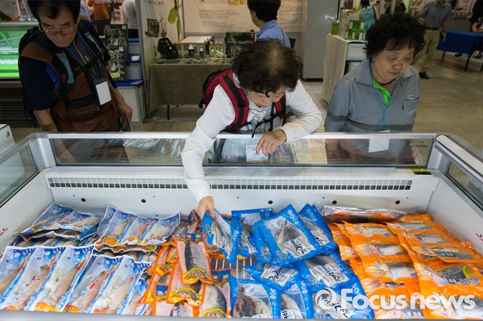 (서울=포커스뉴스) 10일 오후 서울 강남구 코엑스에서 열린 '2016 한가위 명절선물상품전'을 찾은 시민들이 수산물 선물세트를 둘러보고 있다.