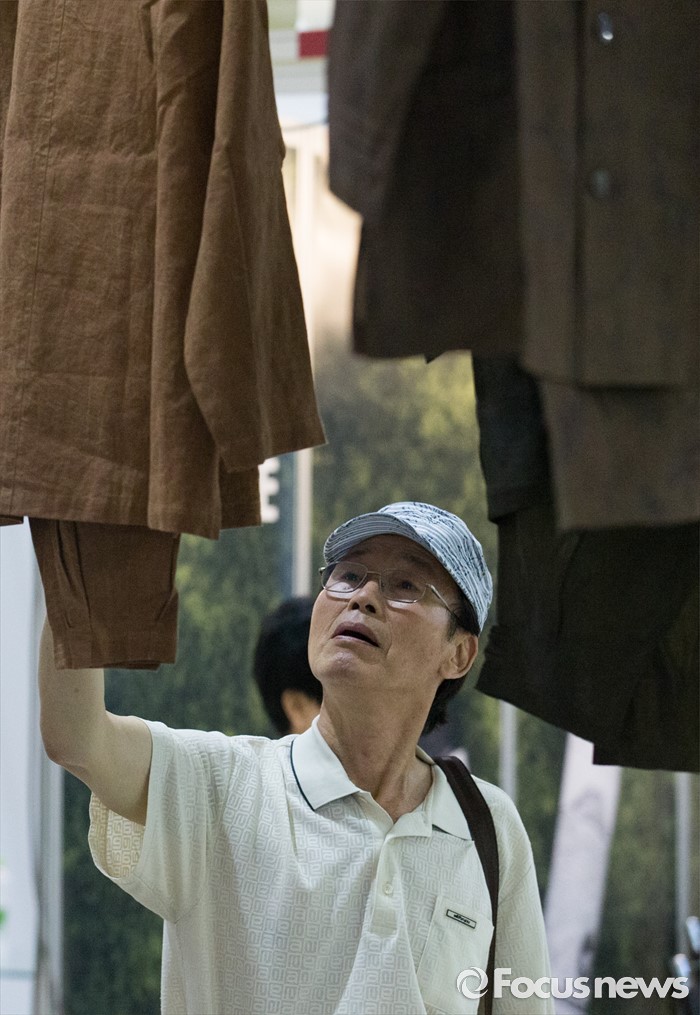 (서울=포커스뉴스) 10일 오후 서울 강남구 코엑스에서 열린 '2016 한가위 명절선물상품전'을 찾은 한 시민이 계량한복 판매 부스를 둘러보고 있다.