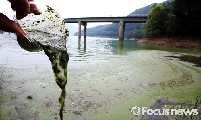 (청주=포커스뉴스) 10일 충북 청주시 문의면 일대 대청호에서 녹조와 녹조부유물이 보이고 있다. 지난 3일 대청호 전 수역에 조류 경보 '관심단계'가 발령됐다. 문의지역의 유해 남조류 세포수가 1ml당 7470을 기록했다.
