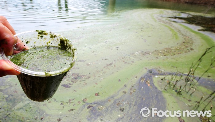 (청주=포커스뉴스) 10일 충북 청주시 문의면 일대 대청호에서 녹조와 녹조부유물이 보이고 있다. 지난 3일 대청호 전 수역에 조류 경보 '관심단계'가 발령됐다. 문의지역의 유해 남조류 세포수가 1ml당 7470을 기록했다.
