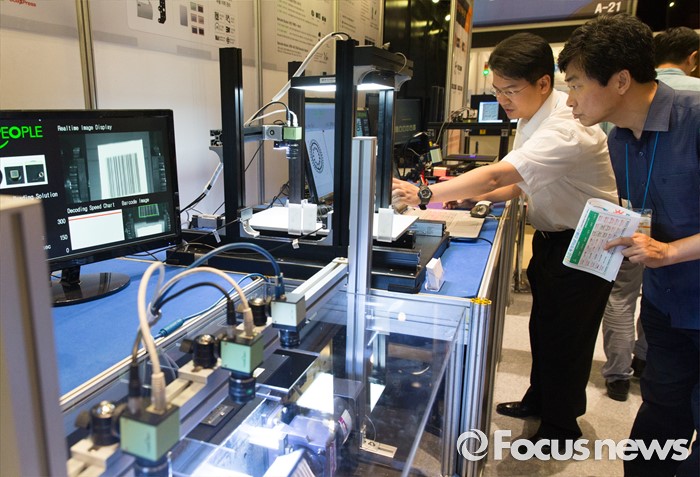 (서울=포커스뉴스) 10일 오후 서울 강남구 코엑스에서 열린 '2016 오토모티브 테크놀로지 엑스포'을 찾은 한 관람객이 정밀카메라 부스 제품 시연을 바라보고 있다.