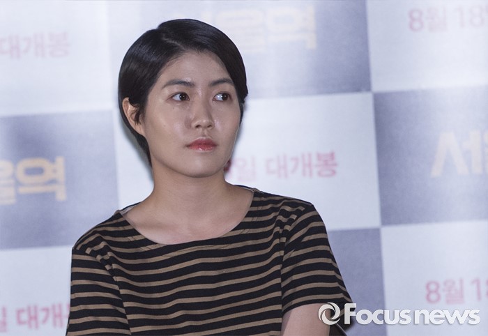 (서울=포커스뉴스) 10일 오후 서울 중구 메가박스 동대문에서 열린 애니메이션 '서울역' 언론시사회에 참석한 배우 심은경이 주변을 살펴보고 있다.