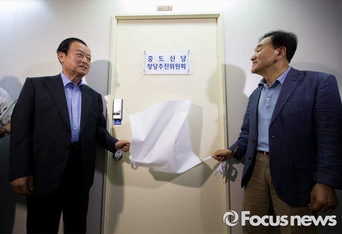 | △ 중도신당 창당추진위원회 현판식하는 이재오-최병국 |