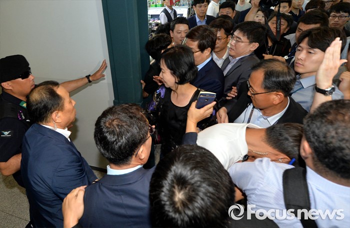 (인천공항=포커스뉴스) 사드배치에 반발하는 중국 측 입장을 듣기 위해 중국을 방문한 손혜원(가운데) 더불어민주당 의원이 10일 오후 인천국제공항을 통해 귀국하고 있다.