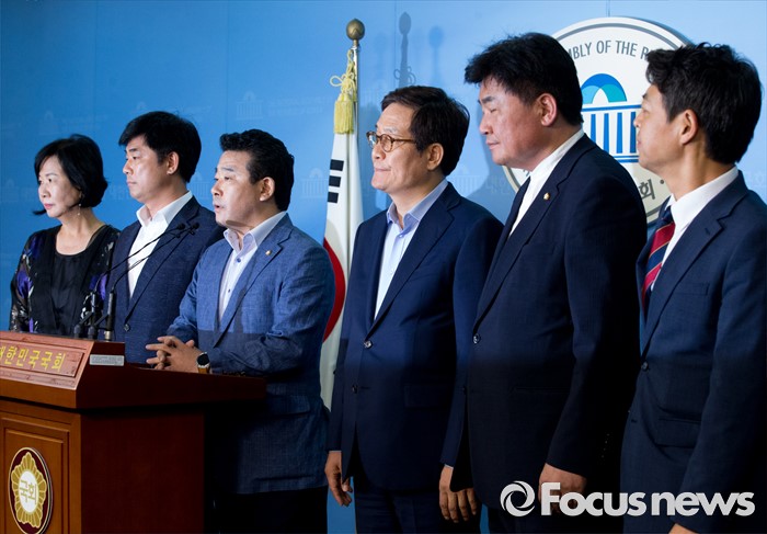 (서울=포커스뉴스) 방중을 마치고 귀국한 더불어민주당 초선 의원들이 10일 오후 서울 여의도 국회 정론관에서 기자회견을 하고 있다. 왼쪽부터 손혜원, 김병욱, 박정, 신동근, 김영호, 소병훈 의원.