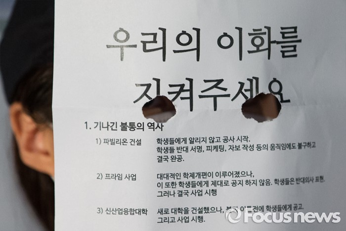 (서울=포커스뉴스) 10일 오후 서울 서대문구 이화여대에서 재학생 및 졸업생들이 최경희 총장의 사퇴를 요구하며 대규모 시위를 하고 있다.
