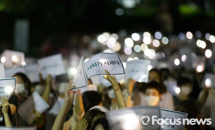 (서울=포커스뉴스) 10일 오후 서울 서대문구 이화여대에서 재학생 및 졸업생들이 최경희 총장의 사퇴를 요구하며 행진을 하고 있다.