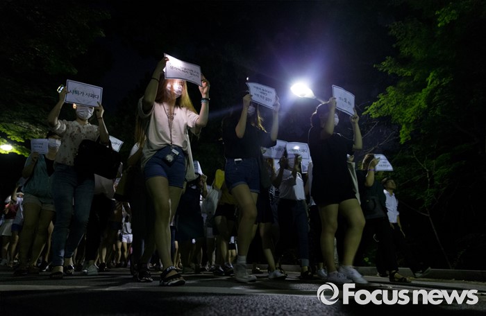 (서울=포커스뉴스) 10일 오후 서울 서대문구 이화여대에서 재학생 및 졸업생들이 최경희 총장의 사퇴를 요구하며 행진을 하고 있다.