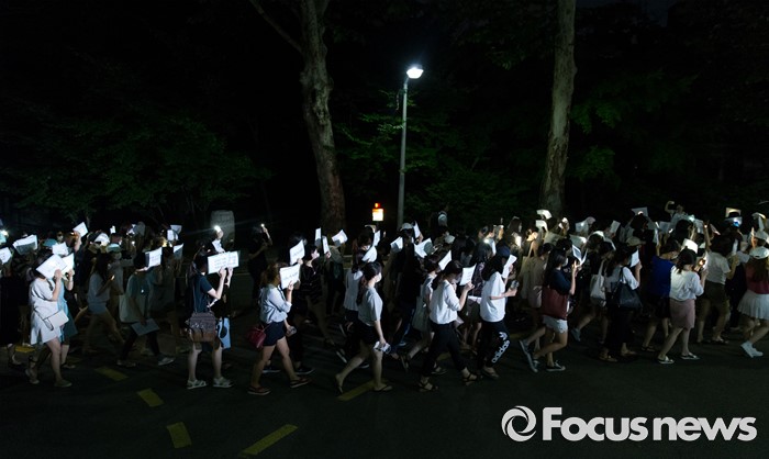 (서울=포커스뉴스) 10일 오후 서울 서대문구 이화여대에서 재학생 및 졸업생들이 최경희 총장의 사퇴를 요구하며 행진을 하고 있다.