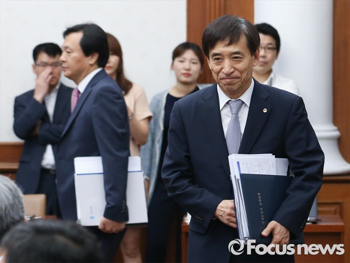 (서울=포커스뉴스) 이주열 한국은행 총재가 11일 오전 서울 중구 한국은행에서 열린 제16차 금융통화위원회에 참석하고 있다.