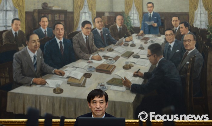 (서울=포커스뉴스) 11일 오전 서울 중구 한국은행에서 열린 제15차 금융통화위원회에 참석한 이주열 한국은행 총재가 생각에 잠겨 있다.