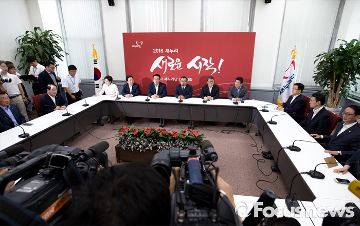 (서울=포커스뉴스) 이정현 새누리당 대표가 11일 오전 서울 여의도 국회에서 열린 최고위원회의에 참석해 취재진에게 지도부를 비롯한 최고위원의 모두발언 공개 없이 비공개 회의로 전환한다고 설명 하고 있다.