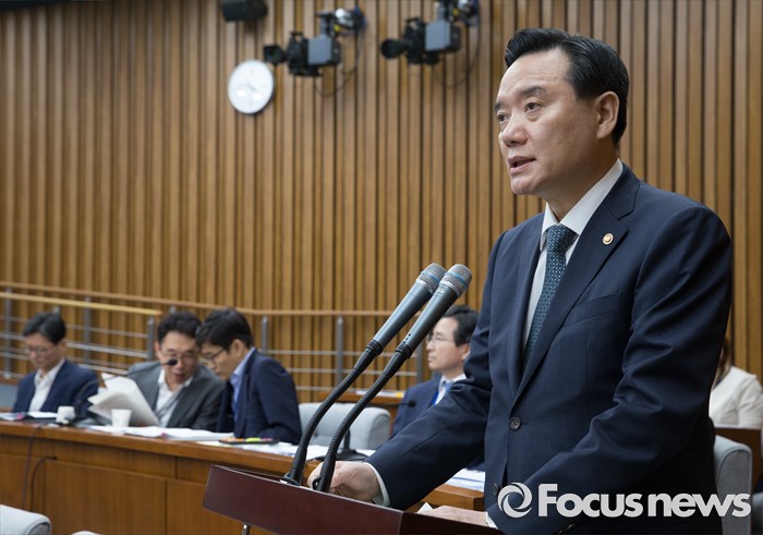 (서울=포커스뉴스) 11일 오전 서울 여의도 국회에서 열린 민생경제 특별위원회 전체회의에 참석한 김현웅 법무부 장관이 업무보고를 하고 있다.
