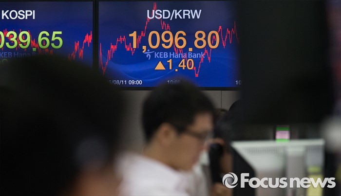 (서울=포커스뉴스) 11일 오전 서울 중구 KEB 하나은행 딜링룸에서 딜러들이 업무를 보고 있다.