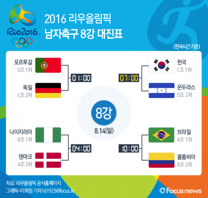 | △ [그래픽] 2016 리우올림픽 남자축구 8강 대진표 |