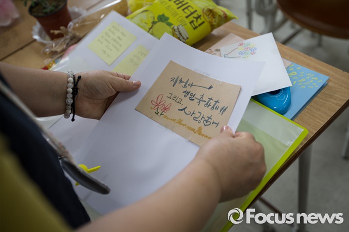 (안산=포커스뉴스) 세월호 참사에서 희생된 단원고등학교 학생들의 교실 이전 절차가 진행 중인 11일 오전, 경기도 안산시 단원고등학교 기억교실에서 희생 아이들 가족들이 책상 정리를 하며 슬픔에 젖어 있다.