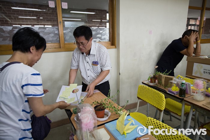 (안산=포커스뉴스) 세월호 참사에서 희생된 단원고등학교 학생들의 교실 이전 절차가 진행 중인 11일 오전, 경기도 안산시 단원고등학교 기억교실에서 희생 아이들 가족들이 책상위 유품과 기록물들을 수습하고 있다.
