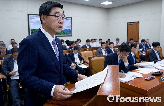 (서울=포커스뉴스) 11일 오후 서울 여의도 국회에서 열린 환경노동위원회 전체회의에 참석한 이기권 고용노동부 장관이 현안보고를 하고 있다.