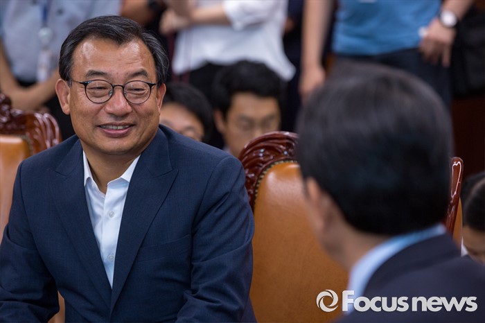 (서울=포커스뉴스) 이정현(왼쪽) 새누리당 대표가 11일 오후 서울 여의도 국회에서 정세균 국회의장을 예방 하고 있다.