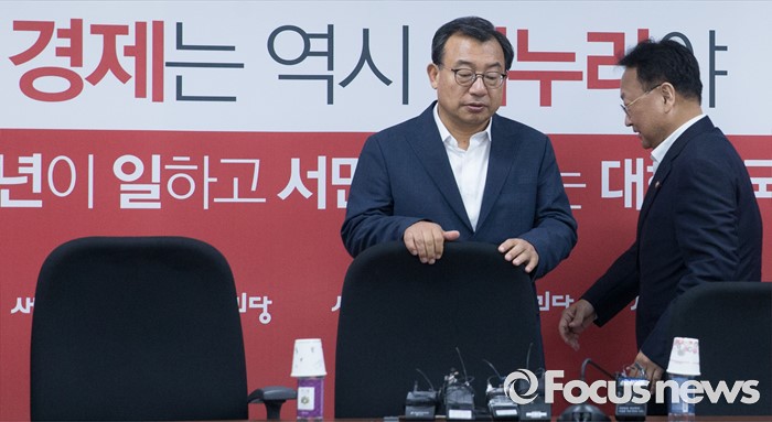 (서울=포커스뉴스) 11일 오후 서울 여의도 국회에서 열린 전기세 누진제 개편 긴급 당정 협의에 이정현(왼쪽) 새누리당 대표, 유일호 경제부총리 겸 기획재정부 장관이 참석하고 있다.