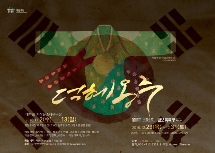 한편 연극 '덕혜옹주'는 1995년 예술의 전당 초연 이후 20년 만에 극단 '어니스트 시어터'를 통해 재공연된다. 2016년 연극 '덕혜옹주'는 한국의 대표 극작가 정복근작가와 오광욱 연출가가 맡았으며 오는 11월2일 첫 공연을 앞두고 있다.배우 이현이 연극 '덕혜옹주'의 '소 다케시'역에 캐스팅됐다.<사진제공=지오아미코리아>연극 '덕혜옹주' 포스터.<사진제공=극단 어니스트 시어터>