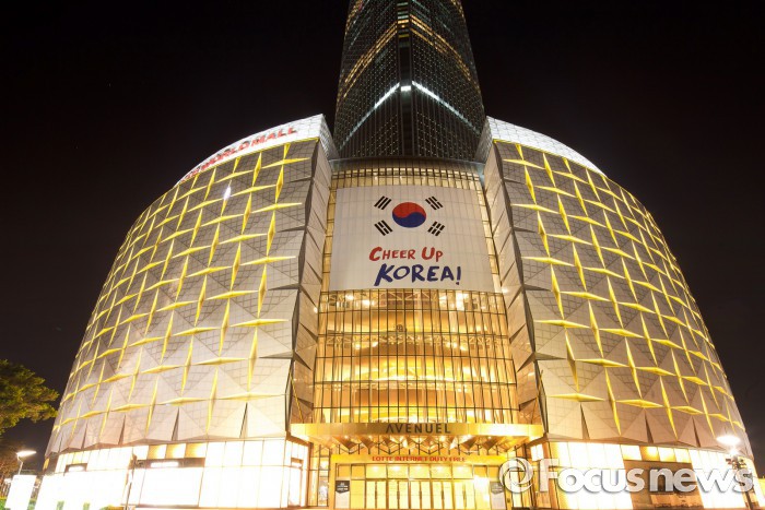 에비뉴엘 월드타워점 외부 유리창(파사드)에 가로 20미터 크기의 대형 태극기와 함께 ‘대한민국, 힘내라’라는 뜻의 ‘CHEER UP KOREA’ 응원 메시지를 이달 말까지 부착한다.