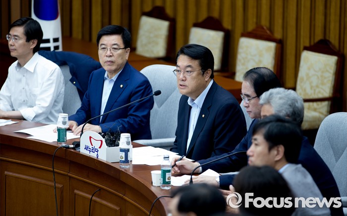 (서울=포커스뉴스) 정진석(왼쪽 세번째) 새누리당 원내대표가 12일 오전 서울 여의도 국회에서 열린 원내대책회의에 참석해 모두발언을 하고 있다.