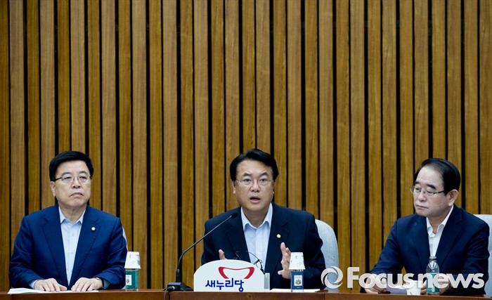 (서울=포커스뉴스) 정진석(가운데) 새누리당 원내대표가 12일 오전 서울 여의도 국회에서 열린 원내대책회의에 참석해 모두발언을 하고 있다.